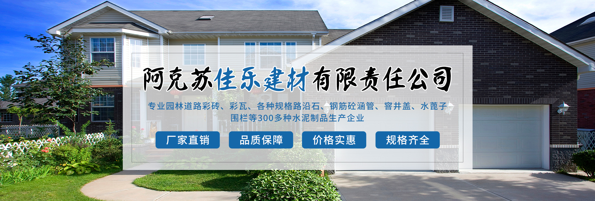 阿克蘇佳樂(lè)建材有限責(zé)任公司成立于2005年,是園林道路彩磚、彩瓦、各種規(guī)格路沿石、鋼筋砼涵管、窨井蓋、水蓖子、圍欄等300多種水泥制品生產(chǎn)企業(yè)。阿克蘇佳樂(lè)建材有限責(zé)任公司位于阿克蘇市塔南路13號(hào)(石油公司往南200米)。現(xiàn)公司在阿克蘇市、阿瓦提縣、烏什縣、拜城縣、輪臺(tái)縣、焉耆縣等地有分廠十余個(gè),為地方城鄉(xiāng)建設(shè)添磚加瓦。 多年來(lái),公司致力于設(shè)備的更新,新產(chǎn)品的研制,用更科學(xué)更美觀的產(chǎn)品順應(yīng)...